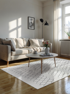 Pysyy hyvin paikallaan ja sopii mihin huoneeseen vaan. Kaunis kuvio.