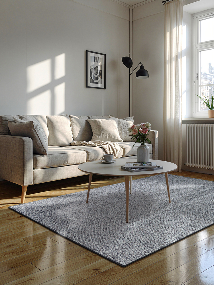 Silmukkanukkainen pinta tuntuu miellyttävältä jalan alla ja on samalla helppo pitää siistinä. Huopapohja tekee matosta helposti käsiteltävän ja varmistaa, että se pysyy tukevasti paikoillaan kaikilla lattiamateriaaleilla. Leikkaus, kanttaus ja pakkaus tehdään omalla verstaallamme Salossa. Toimitusaika on 2–3 viikkoa.