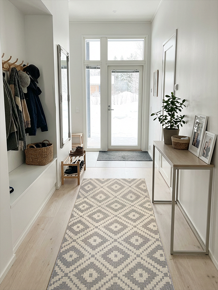 Pueblo sopii erinomaisesti niin eteiseen kuin olohuoneeseen, ja se on saatavilla sekä keskilattiamallina että käytävämattona. Liukumaton kumipohja pitää maton hyvin paikallaan ja lisää käyttömukavuutta arjessa ilman, että matto takertuu lattiaan.