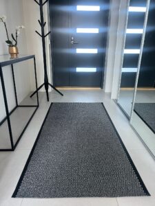 Spectrum on tavallista käytävämattoa hieman leveämpi. Siinä, missä valtaosa käytävämatoista on 80 tai 100 senttiä leveitä, Spectrumista löytyvät 90 ja 120 senttimetrin leveydet. Näin saat tehokkaammin suojattua kotisi lattiat. Lisäksi mattoa ympäröi kestävät kumireunukset. Reunukset estävät mattoon keräytyvän liiallisen kosteuden päätymistä lattialle.Matosta löytyy neljä värivaihtoehtoa: harmaa, punainen, antrasiitti ja ruskea.Spectrum valmistetaan osittain tilaustuotteena, joten olethan meihin yhteydessä, mikäli haluamaasi väriä tai kokoa ei tällä hetkellä ole varastossa.